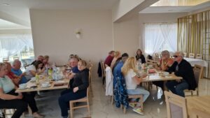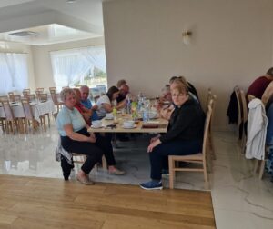 Po części rekreacyjnej wycieczkowicze udali się do Harklowej, gdzie w restauracji „Kulinarny Przysmak” czekał na nich obiad oraz spotkanie integracyjne przy kawie i napojach. W miłej, swobodnej atmosferze był czas na rozmowy, wspomnienia i wspólne spędzenie czasu w gronie znajomych oraz najbliższych.