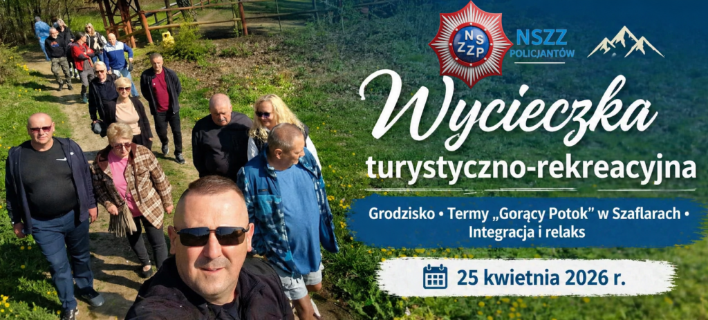 25 kwietnia 2026 r. Zarząd OT Emerytów i Rencistów NSZZ Policjantów woj. małopolskiego wraz z ZT NSZZP w Nowym Sączu zorganizował dla członków związku oraz ich rodzin wyjazd turystyczno-rekreacyjny, który połączył zwiedzanie ciekawych miejsc regionu z wypoczynkiem i integracją uczestników.