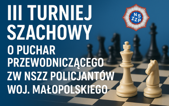 Serdecznie zapraszamy do udziału w III Turnieju Szachowym o Puchar Przewodniczącego Zarządu Wojewódzkiego NSZZ Policjantów woj. małopolskiego. Wydarzenie odbędzie się pod honorowym patronatem Komendanta Miejskiego Policji w Nowym Sączu – insp. Adama Bukańskiego.